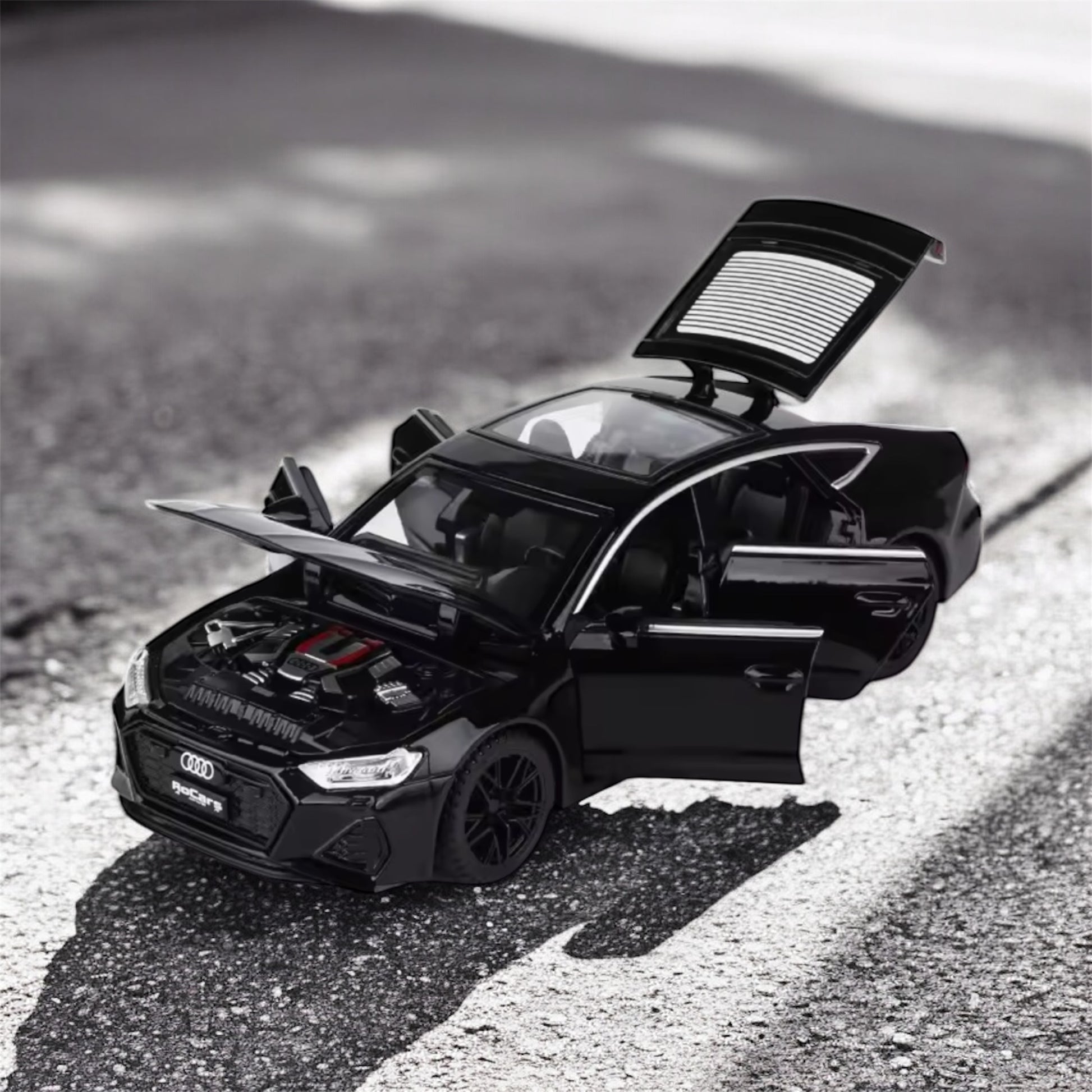 • 1:1 accurate wheels, grille, and Audi accents