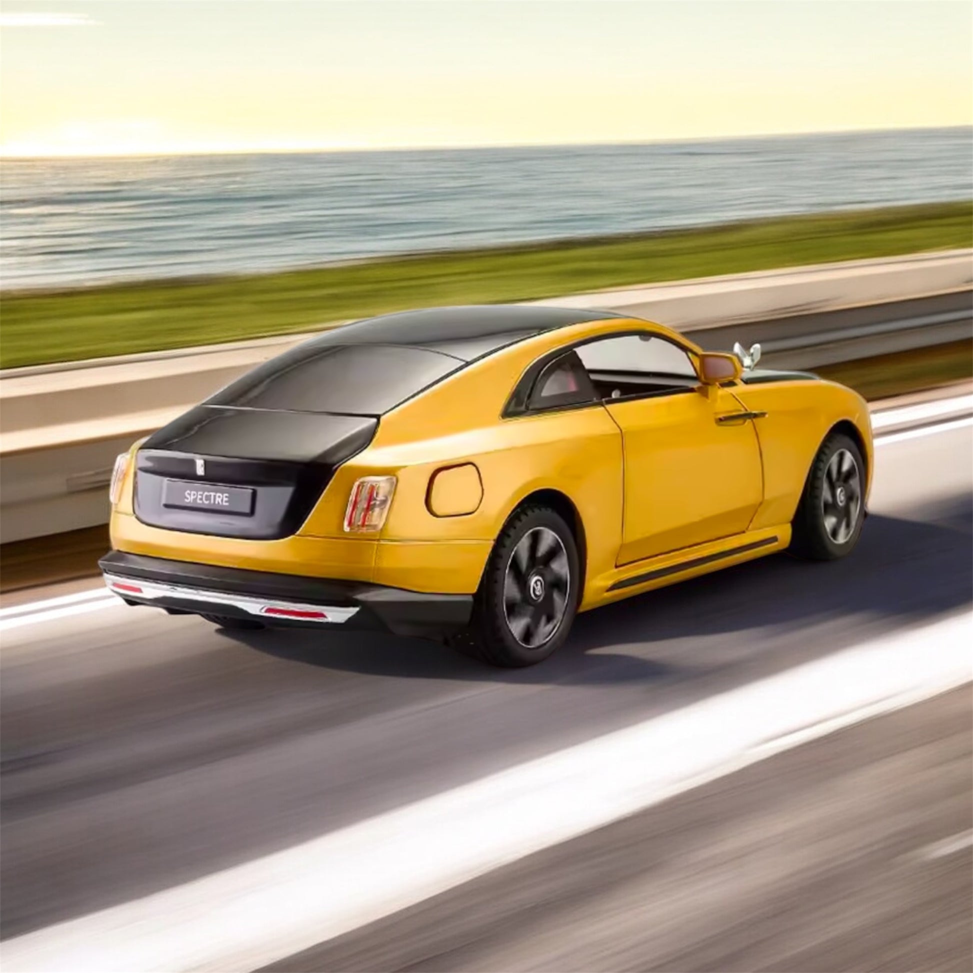 The Rolls-Royce Spectre in Sunset Gold brings a smooth, refined look with premium detailing and a bold, modern presence. Its crisp lines and polished finish make it an eye catching model for anyone who appreciates luxury design.